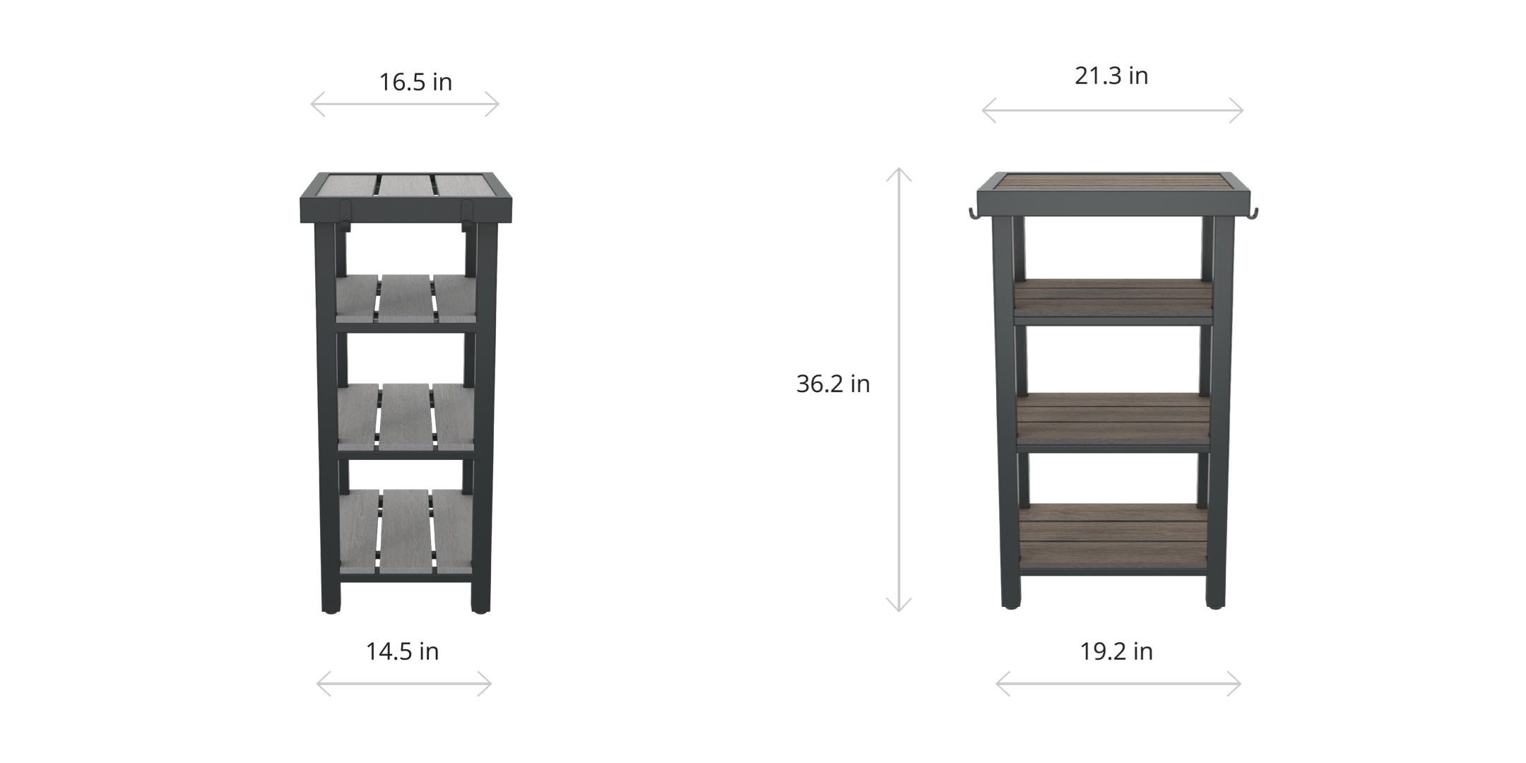 - DIMENSIONS & SIZING: Top tier measures 21.3"L x 16.5"W x 36.2"H. Bottom 3 tiers measure 19.2"L x 14.5"W x 36.2"H.